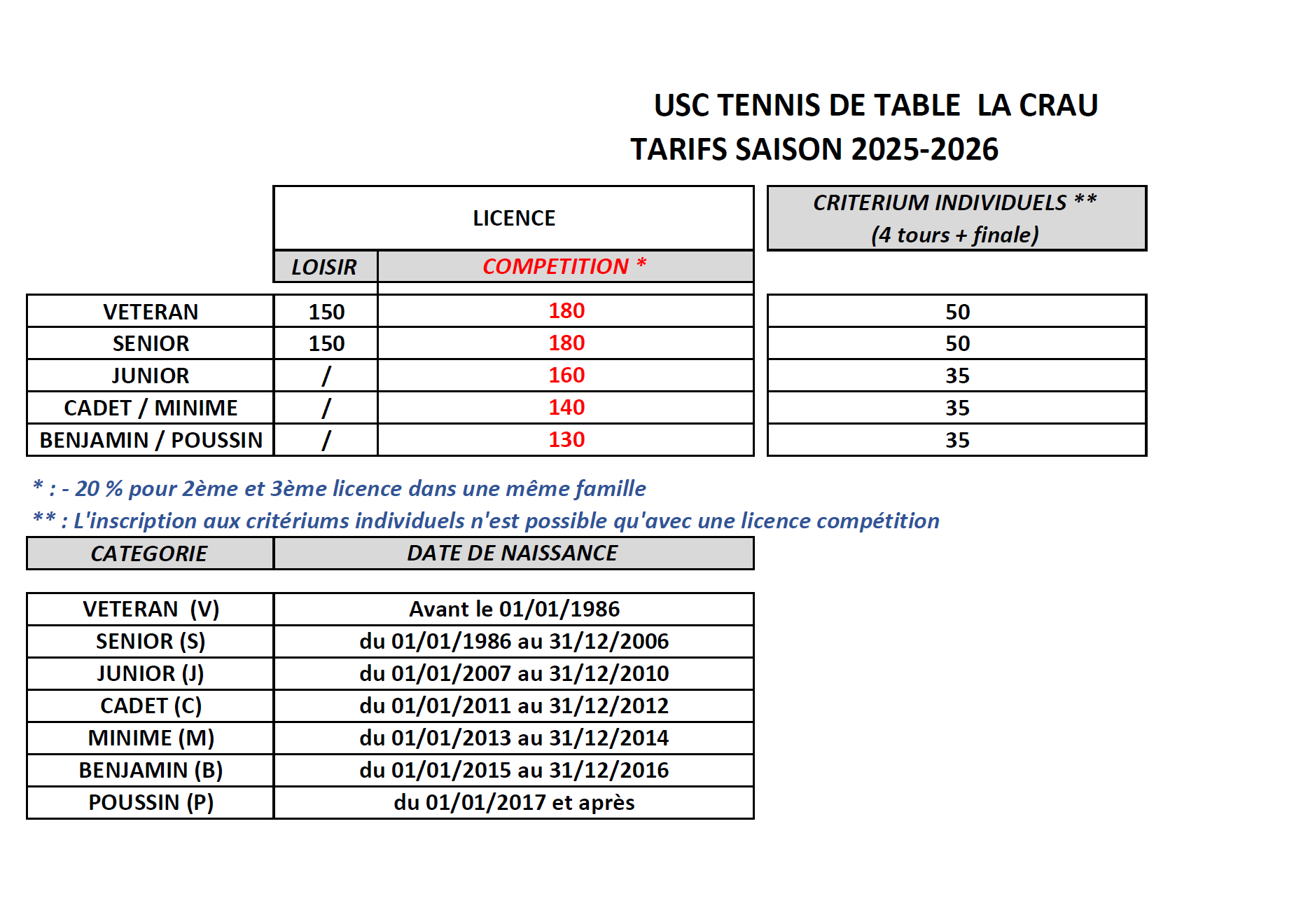 UNION SPORTIVE CRAUROISE TENNIS DE TABLE